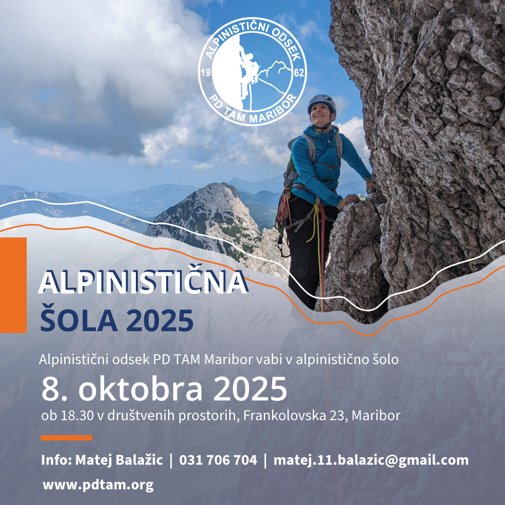 Alpinistična šola se začne skupaj s šolo športnega plezanja, trajala pa bo predvidoma do junija 2026. Poleg vsebin športnega plezanja bodo tečajniki spoznali še vrvne manevre za reševanje, tehnike varovanja v neopremljenih smereh v gorah, pravilno zimsko tehniko, nevarnosti v gorah, pripravo ture, orientacijo in drugo.