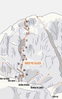 V tokratni Naši smeri predstavljamo Zajedo v južni steni Skute, ki sodi med bolj obiskane v Kamniško-Savinjskih Alpah, zato nekaj besed o samem ostenju. Za razliko od severne strani Skute, kjer je stena močno razčlenjena in ponekod zložna, je njena južna stran gladka in strma. Stena je visoka približno 300 m, gladke, skoraj navpične plati pa delijo zajede, ki se slepo zgubljajo v previsnih izboklinah. Skala je zaradi južne lege spomladi že kar zgodaj kopna. V ostenju je danes približno 16 smeri, najbolj »klasična« med njimi pa je Južni raz, ki poteka po najbolj izrazitem delu stene. Raz, ki pod vrhom prehaja v steno, v kateri je navpična, enakomerna poklina, sta prva preplezala Vinko Modec in Boris Režek. Kot osemnajstletnika sta se ta ljubljanska alpinista leta 1927 pojavila v stenah Grintovcev in nato v naslednjih 25 letih sistematično opravila vrsto najtežjih vzponov v stenah Male Kalške gore, Ojstrice, Škarij, Štajerske Rinke, Rzenika in Skute, kjer so njune tri smeri Južni raz, Zajeda in Smer pod Stolpom.