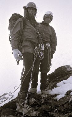 Na snežišče pod vrhom smo priplezali že čisto premočeni. Kolikor nas ni ohladila mokra obleka, je k temu pripomogel še močan mrzel veter. Ker je bil proti vrhu sam led, sta prijatelja na čevlje privezala dereze. Dani je plezal prvi, Marjan drugi, sam pa sem ostal zadnji. Ker nisem imel derez, sem si v led s kladivom sekal ozke stopinje. To garaško vzpenjanje za tovarišema mi je popilo še zadnje moči, da so me v telo prijeli strahoviti krči. Še sreča, da je bilo tega ledišča samo 150 m. Ob petih popoldne smo v besnečem vetru in sodri dosegli vrh. Tu smo ostali le nekaj minut, nato pa smo začeli sestop po zahodni steni, kjer nas je ujela noč in smo še enkrat bivakirali. V mrzlem jutru smo sestopili v dolino in ob slovesu nam je veter samo za hip razpihal gosti sloj oblakov, iz njih pa je kot prikazen vstala v sonce odeta stena Eigerja.