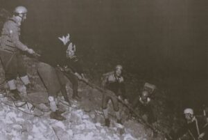 Že zdavnaj se je znočilo. Še vedno prečiva neskončna pobočja proti Krki. Dereze škripljejo po položnih plateh, ki so sem in tja prekinjene s krpami snega. Vsakih nekaj korakov počivam. Vsega imam dovolj. Iz krošnje vzamem baterijo. Sranje! Ne gori! Zamenjati bom moral vložek. Za tako delo je treba sneti rokavice. Takoj se mi zanohta. Sedaj, ko me že tako in tako zebe v roke, si mislim, pa lahko spregovorim še nekaj besed po radiu, da ne bo Tone preveč v skrbeh za naju.