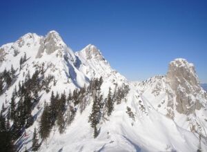 Še vedno je temno, ko zapreva za seboj vrata koče. Svetilki nama pomagata iskati stezico med gostim grmovjem. Spotikava se prek korenin in rineva skozi goščavo. S porajajočim jutrom pa se le izvijeva iz gozda in pohitiva po stezi prek širnih melišč pod steno. Tretjič to sezono ubirava isto pot. Dvakrat nama je tam gori v tistih počeh in plateh spodletelo, danes pa imava resen namen splezati na vrh stene, pa naj bo, kar hoče. Vse bliže nama je strma stena, midva pa postajava molčeča in se vsak zase dvomljivo ozirava navzgor v grozeče previse. Gora z vso težo pritiska na naju. Teh občutkov, ko se zavedaš svoje majhnosti ob taki ogromnosti in popolnosti, se ne da popisati. Le trdna volja in zaupanje vase pomagata premagati take krize in tudi midva se prisiljeno neprizadeta navezujeva pri vstopu. Sonce je že začelo svoj zmagoviti pohod in vrhovi nad zatrepom doline so v zlati luči nadvse lepi in človek bi jih samo gledal, užival trenutke, ki se ne ponavljajo vsak dan in so tako minljivi.