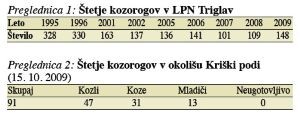 Iz prikazanih preglednic lahko razberemo število preštetih kozorogov (toliko jih je bilo najmanj v tistem letu), ki se iz leta v leto nekoliko spreminja, vendar dobimo kar dobro podobo stanja in razlik med nekajletnimi obdobji. Številke zadnjih nekaj let kažejo, da je v LPN Triglav zdajšnja ocenjena številčnost okrog 150 kozorogov.
