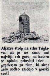 Ko so v enem naših planinskih društev načrtovali izlete v letošnjem letu, se niso mogli odločiti, ali bi v letošnji program vključili tudi vzpon na Triglav ali ne. “Da veste, petdeset jih imam, ki bi se takoj prijavili!” je zatrdil eden od vodnikov. Drugi so ga z rahlo zavistjo opazovali: vodniki tur čez Velebit, na Ratitovec, v zasavske gore, na Mojstrovko, v Savinjske in Kamniške Alpe, čez Pohorje se bodo lahko “pohvalili” z veliko bolj skromno udeležbo …