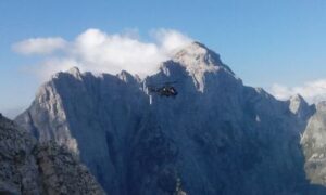 Do Grebenca celo vodiva kolono. Ni mi všeč, da se tako napreza, vendar ostajam tiho, punca že ve. Me pa neprestano sprašuje o moji službi, o gorski reševalni službi, opremi, helikopterjih, reševanjih in vseh pogledih je zelo zvedav deklič.