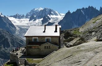 Refuge du Couvercle – zavetišče pod skalo, ikonično zatočišče, ki se nahaja na rtu nad vse bolj izginjajočim ledenikom Mer de Glace, ponuja spektakularen razgled na gorovja Grandes Jorasses, Droîtes in Courtes …