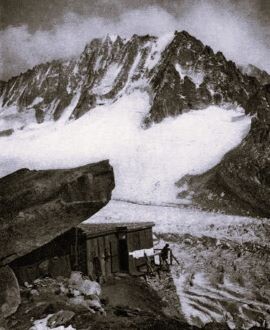 Konec 19. stoletja so se planinci in alpinisti, ki so se odpravljali k vznožju mitskih gora nad (Morje ledu) Mer de Glace, zatekli v zavetje velikega balvana pod steno, kjer je bila na levem bregu ledenika Talèfre zgrajen preprost bivak, imenovan »zavetišče Pierre à Béranger«. Skromna lesena kočica, zgrajena leta 1867, se je naslanjala na ogromen blok na višini 2466 m. Leta 1903 pa se podrla.