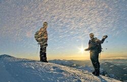 Kljub pomislekom vztrajamo. Tilen ki sproti bere višino na instrumentu, pove: »Blizu smo, še 30 višinskih metrov do vrha.« Vsak hip bi morali zagledati križ pred kočo. Pod pogojem, da smo na pravi poti. A megla postaja vse gostejša, Uroš ima težave z opazovanjem tal, vse se vrtinči in meša. Naenkrat pod nami ni več dreves, samo trava. V glavi strah: Kaj, če zaidemo preveč severno, na drugo stran hriba? Kam bomo pa potem bežali?