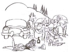 »Ampak seveda!« Primem nahrbtnik in privlečeni na dan pelerino. »Rezerva,« pravim, »rezerva za vsak primer. To spada k izkušnjam. Malo je danes izkušenih, veste. Jaz mislim na vse, tudi na neopremljene prijatelje. Pelerina je moja spremljevalka. Spremljevalka na dolgih pohodih. Tudi na nevarnih pohodih! Za vas — gospodična.«