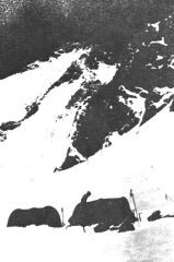 Nič kaj dobro nisem prespal noči. Filipa pa je močno bolela glava in je kašljal, zato sva se z Janezom sama odpravila v hrib. Kar hitro sva bila na koncu vrvi. O, koliko je bilo sedaj lažje in koliko napora in volje je bilo treba pri pritrjevanju. Sedaj je šlo nekaj časa lažje, potem pa sva morala zaradi strmine odviti novo vrv. Sto metrov pritrjevalne in 80 metrov varovalne vrvi, strmina okoli 45°, nahrbtnik in v njem šotor za trojko in še en svitek vrvi, korak, ki se v pršiču vdira čez kolena, to bi bil še danes napor, tu na 6.600 metrov pa je bilo še vse huje in vsake toliko časa je zmanjkalo zraka in ril sem z glavo po snegu. 250 metrov vrvi sva pritrdila na ta način. Zmanjkalo je vrvi, pa tudi steber se je položil in že sva videla njegov vrh. Na varovalni vrvi sva se odpravila naprej. Sonce, ki je danes spet pripekalo, je omehčalo sneg in močno se je vdiralo. Veliko truda naju je stalo, da sva prišla pod vrh. Prav nanj pa nisva mogla, ker so bili na grebenu opasti in že sedaj nisva vedela, če menda nisva bila že na njih.