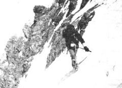Ko se je telo po napornem dnevu odpočilo, ko je bil želodec potešen in ko sonce ni več sijalo tako navpično s svojimi močnimi žarki, takrat je v poznem popoldnevu tu v drugem višinskem taboru najlepše. Ležal sem pred šotorom na armafleksu, pogled pa je bil usmerjen tja od koder smo se spustili. In glej, tudi megla, ki je cel dan visela po pobočju se je razgrnila, tako, da sem lahko videl črto, ki se vleče po belem stebru. Ni ravna. Že ko smo prejšnji dan v mislih risali smer, smo vedeli, da nam bodo seraki, ki vežejo pobočje, nagajali. Zjutraj je bilo vreme kilavo in megleno, pa smo se vseeno zagrizli v breg za taborom. Od daleč gledano je videti, kot podstavek stebru. V eni uri smo bili pod prvimi seraki. Prečili smo levo pod njimi. Zelo strm, slab led nas je čakal in prav nič prijetno se nismo počutili, ko smo vlekli 100-metrsko vrv za seboj. Kolena so mi bila v napoto, strmine pa ni hotelo biti konca. Končno sem le pripihal do drugega seraka, pred katerim je bilo nekaj ravnega prostora. Pritrdil sem vrv toliko, da sta prijatelja prišla za menoj, potem pa smo jo vsi trije s pomočjo treh »dead menov« pošteno »fiksirali«. Megla je bila tako gosta, da nismo videli prav nikamor. Ko se je le malo dvignila, smo nadelali še 150 metrov poti, potem pa smo se za ta dan dokončno ustavili, ker nam ni bila več čisto jasna nadaljnja smer, saj je bila megla tako gosta, da nismo videli ničesar.