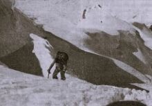 V megli, vetru in snegu smo popoldne sestopili v bazo. Sestop je bil kot mora. V prečnici sem za hip odložil nahrbtnik, da bi prizor posnel na filmski trak. V tem trenutku je nad mano počilo in rahlo zašumelo. Samo tanka plast se je speljala v globino. Premagal sem grozo, pritisnil na sprožilec in posnel kader.
