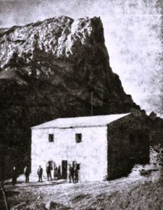 Koča nudi v sili prostora dvajsetim do petindvajsetim osebam. Opremljena je vzorno. Prenočevati je tu strogo prepovedano, razen v sili; to pa zaradi kamenja, ki bi ga rušili turisti na spodaj idoče partije. Noč in dan drve kamene lavine po obeh rebrih. Skale vseh kalibrov frčijo proti ledenikom, se raztreščijo na tisoč in tisoč drobcev in kamor priletijo, dvigajo oblake prahu. Zdi se, kot da bi ves hrib oživel, povsod slišiš tulenje, ropotanje in prasketanje.