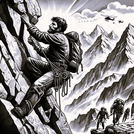 Imeli smo srečo, bil je jasen dan. Toda ne hvali dneva pred večerom! Zato smo opustili namero, da bi zlezli tudi na Simonyspitze, pač pa smo hitro preko strmega hrbta, na katerem je jutranje sonce že odprlo vodne žile. In preko lahke opasti stopili na greben. Vrh se nam je zdel čisto blizu, oko se glede daljav tu bridko vara. Posedli smo na skalah v soju novega snega in merili z očmi neskončnost in raznolikost alpskega sveta. Videle so se bavarske in južnotirolske gore, v sinjkasti daljini, kjer se je gora skoraj stopila z nebesno modrino, smo zaslutili ljube konture Julijcev in pravljične like Dolomitov. Čim dalje, tem lepše, tem višje in silneje. Bližnja Reichenspitze — Gerlosspitze ali drzni Lasörling so gledani s tega grebena izgubili vso svojo veličastnost.