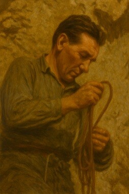 Belač je nad svojim stojiščem na okrajku zabil še en klin in se potem varovan na njem vrnil, da je sprostil vrvi iz ostalih, ker so se že preveč trle po vponkah in med žmulami. Potem je nad zadnjim klinom zabil še enega, vpel vanj stopno zanko in se na njej dvignil v previs.