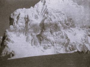 Ko je Lojze začel plezati, sem spoznal, da je to precej mučeniško stojišče. Klina me nista držala k steni, zato sem vselej počasi drsel s stebrička, kadarkoli se je Lojze obesil na vrvi. Rotil sem ga, naj hitro leze, toda on je hladnokrvno tolkel kline iz stene. Kljub temu je bil kmalu pri meni in me odrešil mučnega čakanja. »Še tale raztezaj, pa bova v lažjem svetu,« je dejal. Tega sem se zares razveselil, ker sem imel za ta dan kar dosti akrobacij. Lojze je zadnji raztežaj res lepo izplezal in kmalu sva stala skupaj. Pohitela sva v strm, globoko zasnežen žleb, za katerim sva slutila vrh Glave.