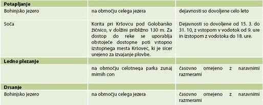 Soglasje za izvajanje turističnih, športnih in rekreacijskih dejavnosti se lahko podeli le za območja in v času, ki je naveden v tabeli.
