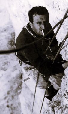 ODPOR ZOPER MODERNA PLEZALNA SREDSTVA se še ni polegel, čeprav je videti, kot da so se od leta 1958 že udomačili v alpinističnih »centrih«. Nasprotniki vrtalnih klinov pravijo, da je obveljalo in mora za vselej veljati »cehovsko« pravilo: vrv, klin, vponka, drugih sredstev pa ni treba. Že pri direttissimi starejšega tipa, da se je nek znam plezalec jezil: »Ta smer je gnoj. Obešaš se od klina do klina, s klina na klin, plezanja je zelo malo.« Dr. Hans Gotting pravi, da se bo vrednost vzpona (vrednost pa ni isto kot težavnost) odslej merila bolj po raztežajih prostega plezanja. Vse prav, nerodna pa je le beseda »ceh«. Nazaj k cehom, za staro pravdo! To nič kaj prida ne obeta. Z leseno žlico ne bomo več jedli, pa če se nam še tako toži po starih časih.