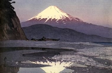 Zjutraj je videl, da ima Fudžijamo pred nosom. Fudžijama je nacionalna svetinja, japonska Mekka, na vrhu je oltar. Japonci goro danes imenujejo samo Fudži. 3778 m visoki vulkan ima 160 km obsegajoče podnožje. Poleg vulkana Cotopaxi v Equadoru je Fudži najlepši vulkan na zemlji. Ime si Japonci razlagajo na vse mogoče načine. Do 14. st. je bil aktiven vulkan, po l. 1707 miruje. Zabeleženih je 18 erupcij, najhujše so bile l. 800, 864 in 1707. L. 1707 je bil kraj Edo, 65 km od Tokia, pokrit s 15 cm debelim pokrivalom pepela.
