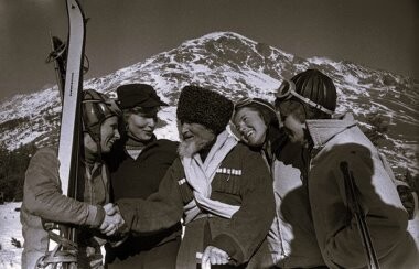 NORSKAY TENZING, svetovnoznani sirdar iz Darjeelinga je bil po sestanku himalajcev, ki spadajo med veterane Everesta, gost »Inter Nationes« v Bonnu in v neki kasarni v Mittenwaldu, kjer so mu pokazali najmodernejše reševalne priprave nemške vojske. S helikopterjem so ga odpeljali v Wetterstein, da je bil priča reševanja iz stene. Tenzing v Darjeelingu šola Šerpe in tudi indijsko planinsko vojsko.