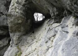 Pridem na markirano pot, ki je speljana pod Malim Javornikom. Oddahnem si, rešena sem. Pohitim k naslednjim zakladom. Najprej se mi pokažejo okna, skozi katera je speljana pot zavarovana z zajlo in lestvijo. Spustim se navzdol in iščem še drugo okno. Ni ga. Kako ne? Res že več let nisem bila tu, ampak okno mora bit. Grem k jami. Vhod je lepo zaprt s skalo, da se sploh ne vidi, da je jama. Zvlečem se vanjo. Naredim nekaj posnetkov in se splazim ven. Umazana sem. Spustim se navzdol. Pa kje je drugo okno? Saj mora bit. Grem še enkrat pogledat. Takrat se spomnim, da je tam treba malo poplezat in da je skrito. Odložim nahrbtnik in splezam gor. Seveda, ga že vidim. Ima celo steber. Fotka mi pa ni dobro uspela. Škoda. Vrnem se nazaj in grem skozi okno na drugo stran. Tako sem preverila, če ima Stegovnik še svoje zaklade. Seveda ima in jih bo še imel. Prava čuda narave. Polno naravnih oken, slap in še jama. Bogataš. Sedaj se vzpenjam nanj. O, vesel je, še sončka mi je poslal. Ko sem ga gledala od spodaj je bil zavit v meglico in žalosten. O, kako pa sedaj žari v sončku.
