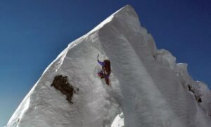 Doroteja je v navezi plezala prvič v tej steni, Jaka pa je že poznal njen značaj. Skupaj sta se uskladila v ritmu, ki ni bil le tehničen, temveč tudi pripoveden. Vsak raz, vsaka polica, vsak klin je bil kot stavek v zgodbi, ki se piše že skoraj stoletje.