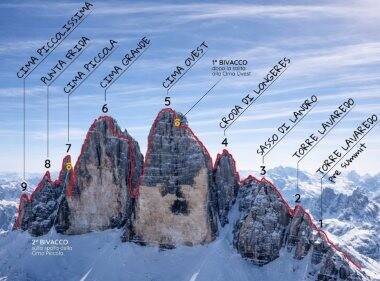 Pretekli konec tedna sta italijanska alpinista Mirco Grasso in Alessandro Baù opravila zimsko prečenje Tre Cime di Lavaredo — Skyline Traverse, kot se je zadeva, ki nima prav dolge brade, poimenovala o eni najbolj prepoznavnih silhuet Dolomitov in Alp. V treh dneh sta se podala v labirint sten med stolpi, ki se nad melišči pnejo v nebo kot brezkončni nebotičniki, kjer sta veliko plezala, čeprav sta komajda obula plezalnike.