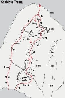 Planinski vestnik 2008/08 Poskakovanje z Divjo kozo Krobath-Metzgerjeva smer, V–/IV+, 550 m Da se nad kočo Pellarini skriva še lep…